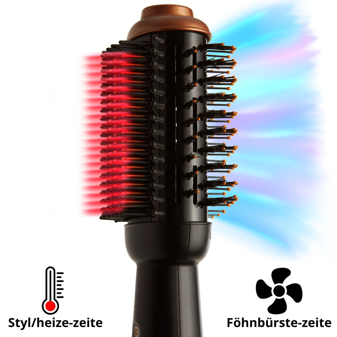 Dieser fortschrittliche Haarstyler kombiniert mühelos eine Föhnbürste mit einem Haarglätter und macht Ihre Haarpflege zu einem echten Vergnügen. Es bietet die perfekte Balance zwischen Trocknen, Volumen hinzufügen, Formen und Glätten , alles verpackt in einem praktischen Werkzeug. Darüber hinaus macht das nahtlose Umschalten zwischen verschiedenen Funktionen das Stylen Ihrer Haare zum Kinderspiel.